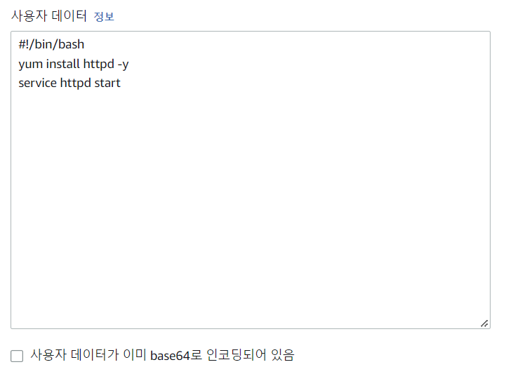 사용자데이터는 인스턴스를 시작할 때 자동으로 실행하는 일종의 Script이다.