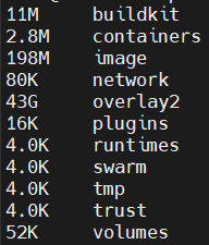 역시나 overlay2에서 대다수의 용량을 차지하고 있었다. 그동안 레이어가 많이 쌓였었나 보다.