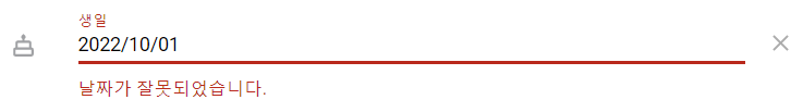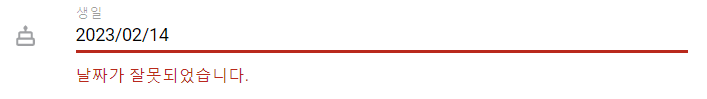 하지만 "날짜가 잘못되었습니다."라는 오류 메시지와 함께 유효성 검사를 통과하지 못한다.
