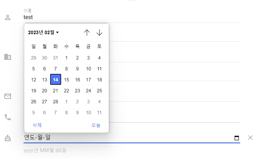 2023.02.14 기준 구글 연락처를 사용 중 가이드가 위와 같이 "yyyy년 MM월 dd일"로 바뀐 것을 볼 수 있다.