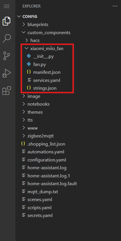 위의 깃허브의 custom_components/xiaomi_miio_fan 안의 파일들을 home assistant의 custom_components/xiaomi_miio_fan 경로 안에 모두 넣어준다.