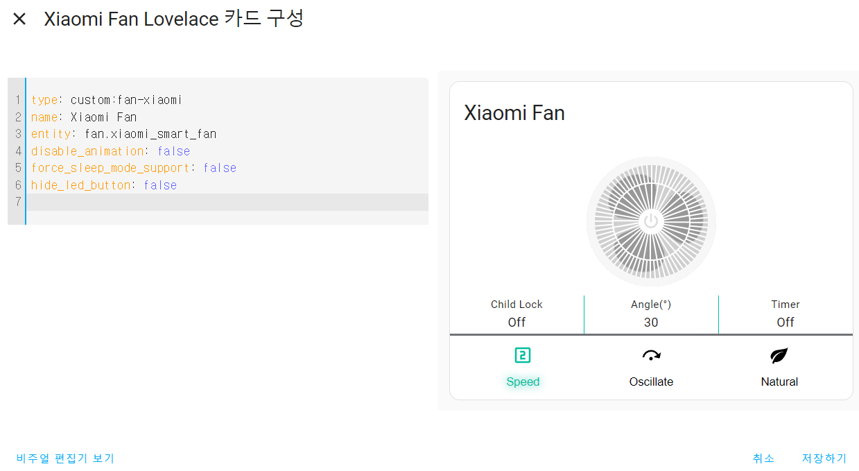 대시보드에 Xiaomi Fan Lovelace Card 추가