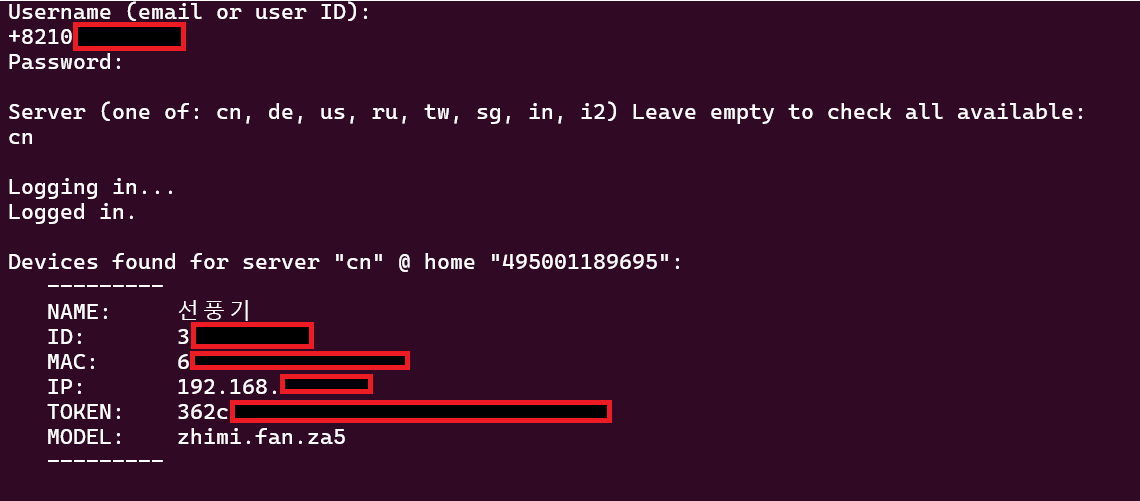 ip는 여러 가지 방법으로 어렵지 않게 알아낼 수 있지만 token은 샤오미 앱에서 제공해주지 않는다.