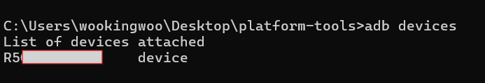 공식 링크에서 운영체제에 맞는 SDK Platform Tools를 다운로드하고, 다운로드한 파일을 압축 해제한 후, 터미널에서 해당 경로로 이동한다. platform-tools 폴더로 이동하면 된다.