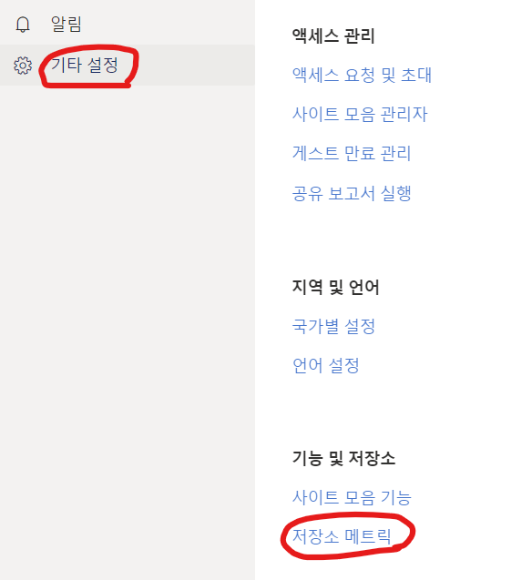 설정 -> OneDrive 설정 -> 기타 설정 -> 저장소 메트릭